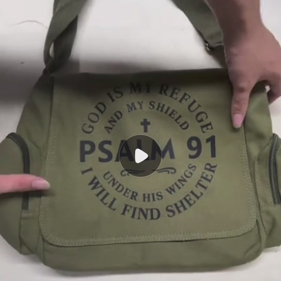 Salmo 91 Dios es mi Refugio y Escudo Bolso Bandolera Vintage - Bolsa Mensajero con Versículo Bíblico Inspirador, Correa Ajustable, Gran Capacidad Verde Oliva Poliéster para Mujeres, Viaje Casual & Regalo, Iconografía Religiosa, Cierre de Cremallera Seguro